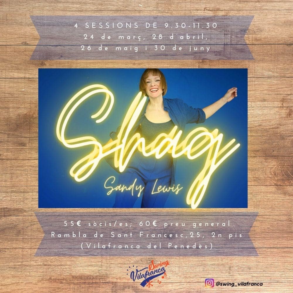 Taller d'iniciació per aprendre a ballar Shag amb Sandy Lewis. Es farà a la Rambla de Sant Francesc 25, 2n pis (Vilafranca del Penedès) de 9.30-11.30h el diumenge abans de la jam mensual. Són 4 sessions:...