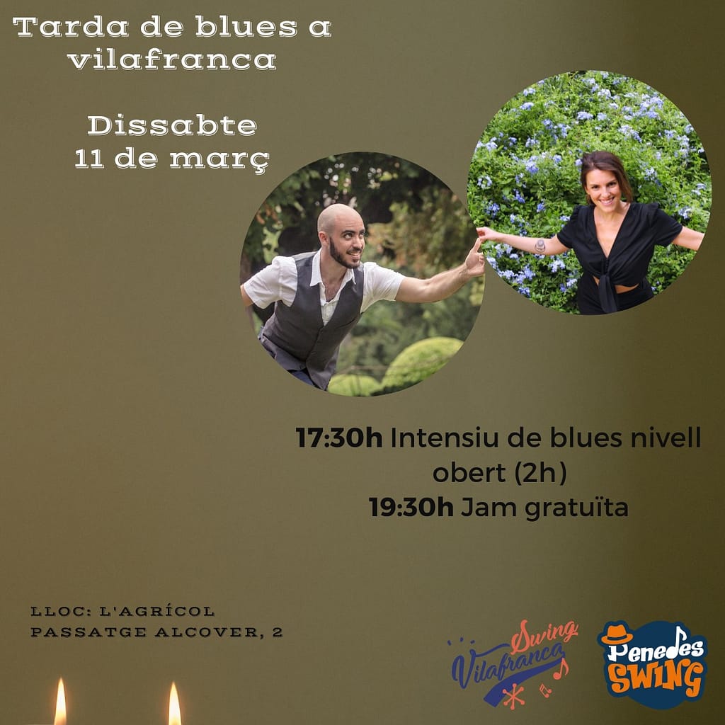 💥17.30 a 19.30 Intensiu Blues Nivell obert amb Carla Camacho i Dani Morillo 👉Preu General: 18€ 👉Socis SwingVilafranca o alumnes PenedèSwing: 15€ 💥19.30 a 21.30 Jam de Blues amb Dj...
