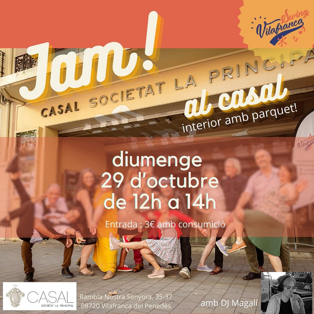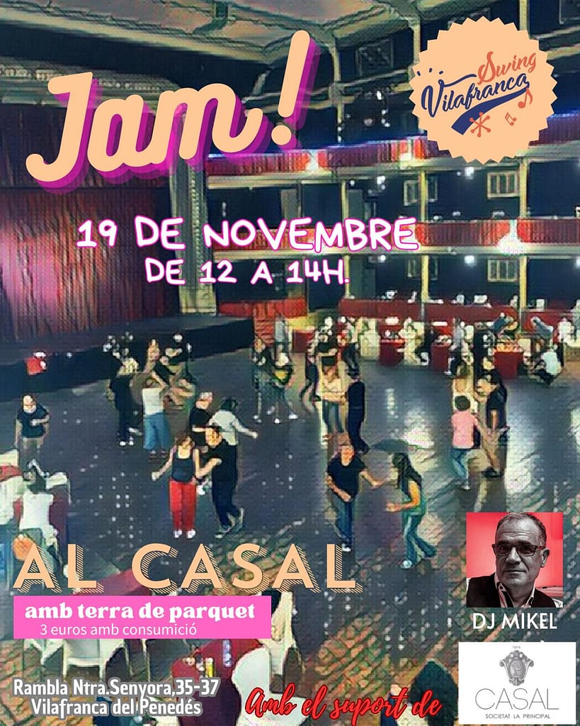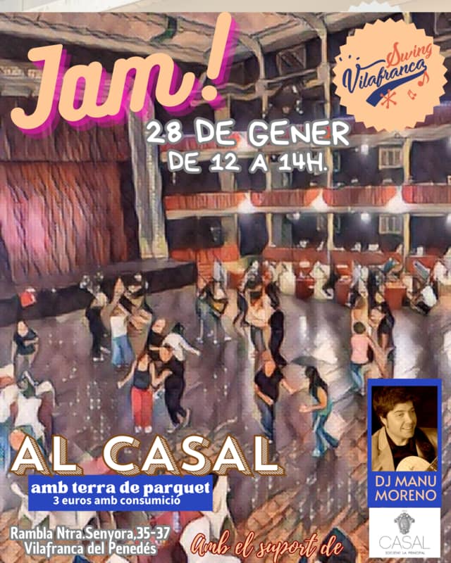 Diumenge 28 de gener es farà la jam mensual de Swing Vilafranca al Casal de Vilafranca de 12-14h. L'entrada són 3€ incloent una consumició. amb Dj Manu Moreno